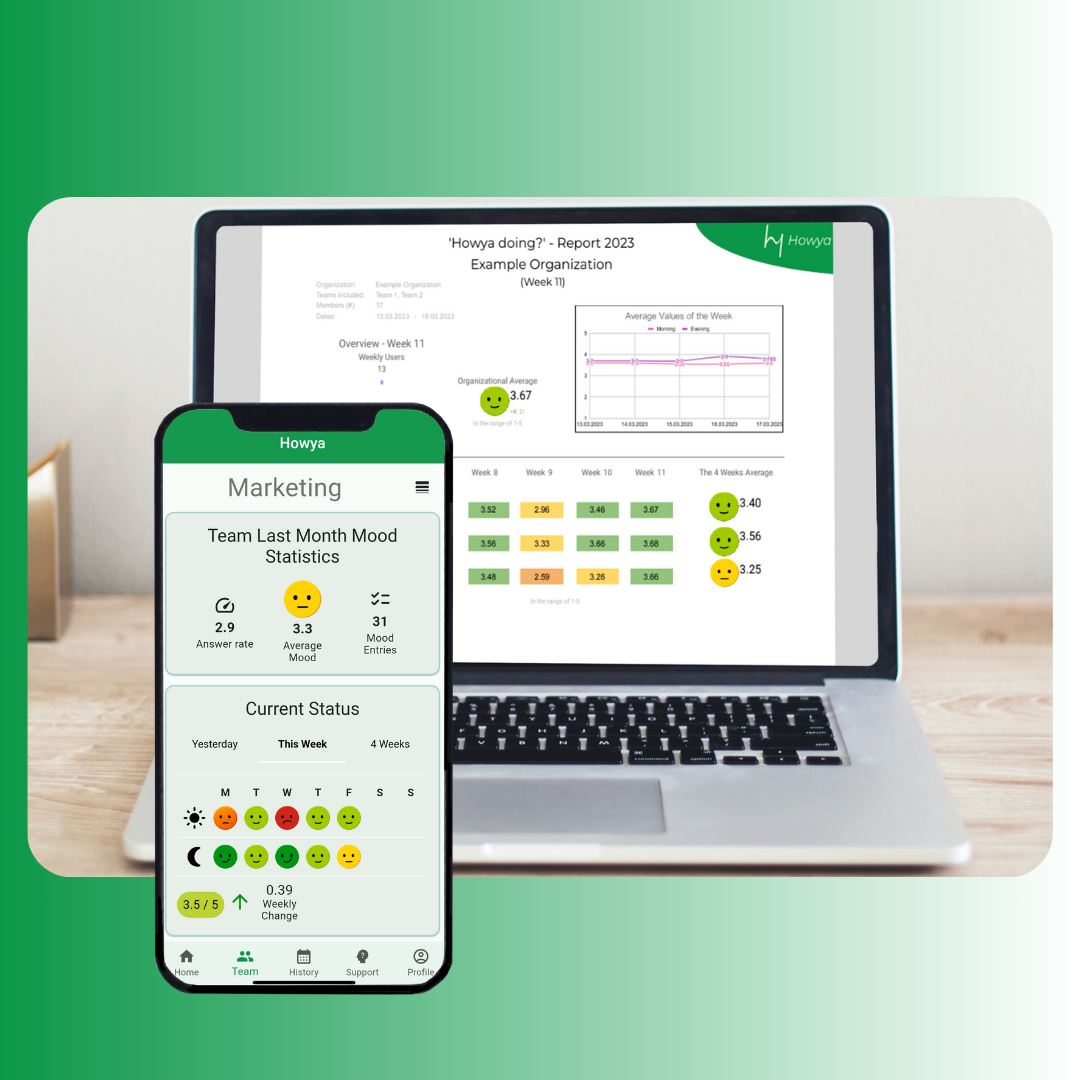 Tracking and improving organizational wellbeing is easier than ever with Howya. Unlike in the commonly used employee surveys, Howya tracks employee wellbeing and satisfaction in real time, providing actionable insights to enhance work-life quality in the present moment.